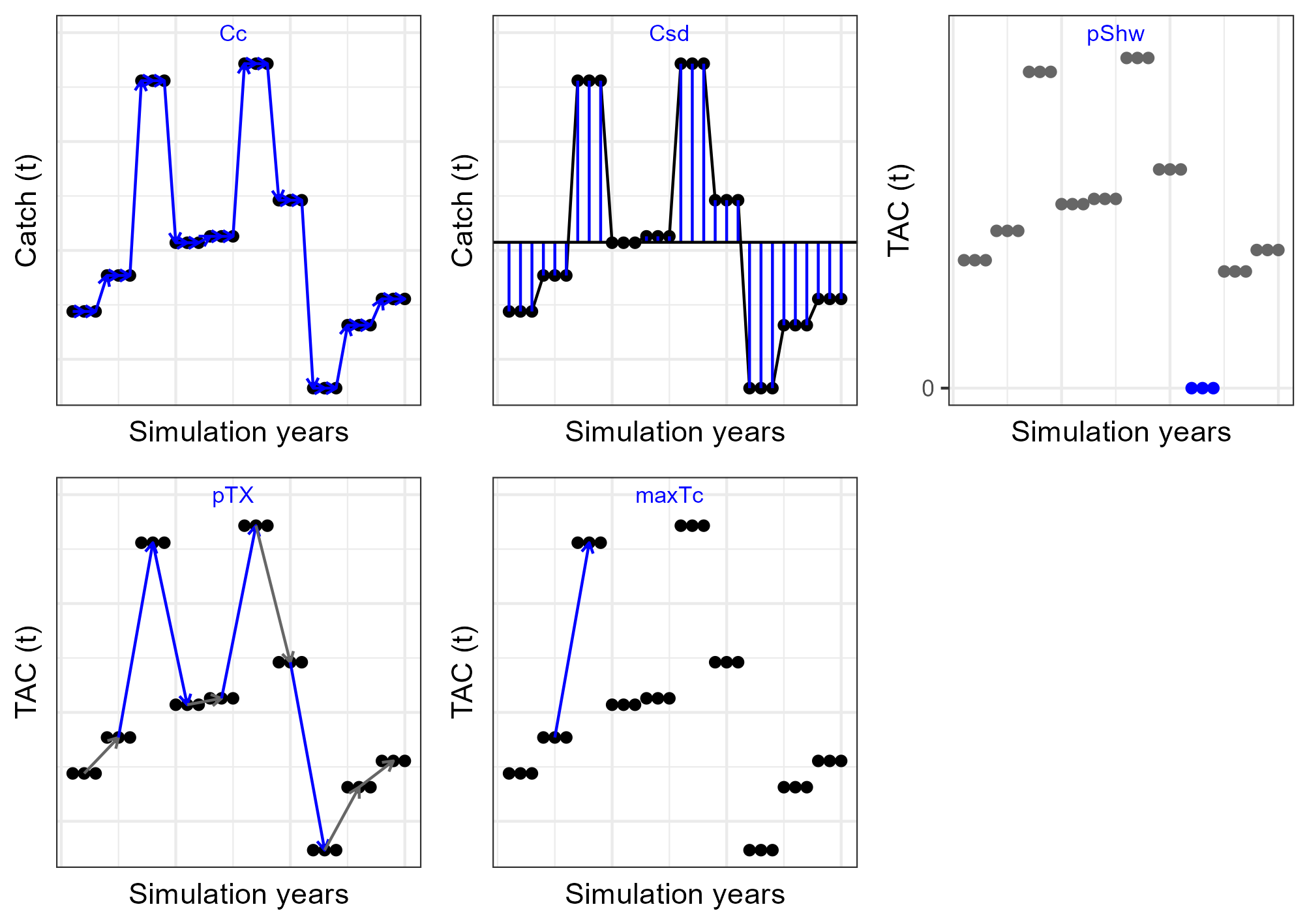 | Stability | Maximum amount of TAC change between management periods | \(maxTc\) | Maximum ratio of TAC change |